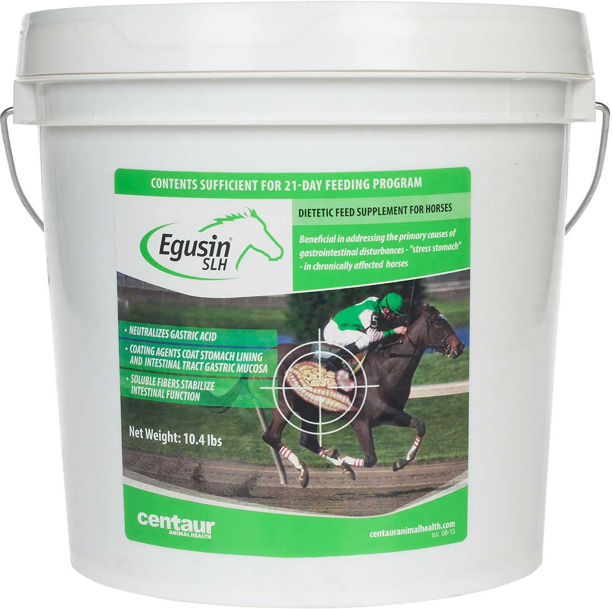 EGUSIN® SLH Egusin SLH (stomach lining healer) for Horses is used in the treatment of "stress stomach." Beneficial in addressing the primary causes of gastro-intestinal disturbances. The dietary ingredients in Egusin SLH help neutralize gastric acid, protect the stomach, stabilize intestinal function and bind to toxins. With antacids to provide instant and sustained neutralization of corrosive acid. Increased levels of lecithin to protect the gastric mucosal membranes and aid in re-establishing the stomach lining. Dietetic soluble fibers to stabilize and improve function of the stomach and colon. Insoluble oat fibers to provide fiber and promote intestinal absorption. Pectin to bind with toxins that can contribute to diarrhea.