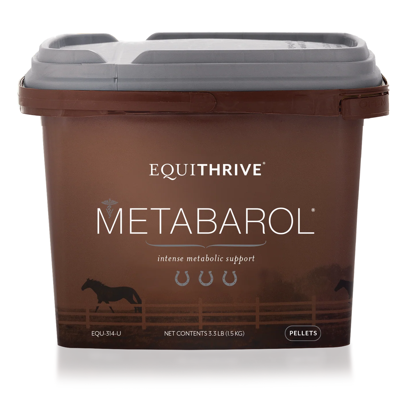 Metabarol™ by Equithrive® helps reduce insulin resistance and supports optimum metabolic function in horses. Metaborol™ contains Resverasyn, a micro-encapsulated resveratrol product that has been shown to reduce insulin levels in response to oral glucose challenges. Metabarol™ improves insulin sensitivity and optimizes metabolic efficiency.