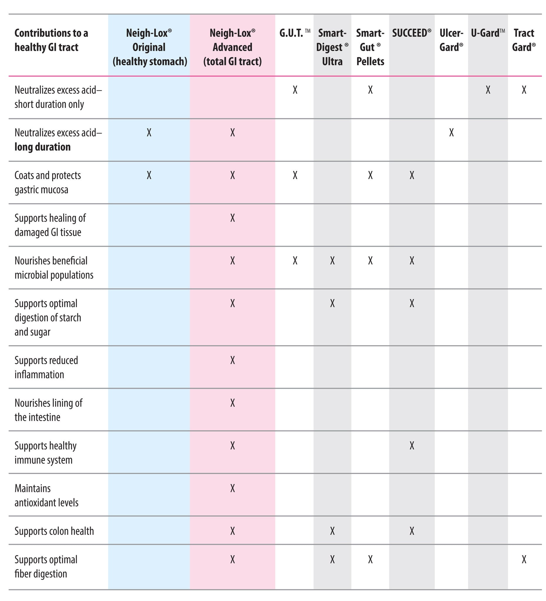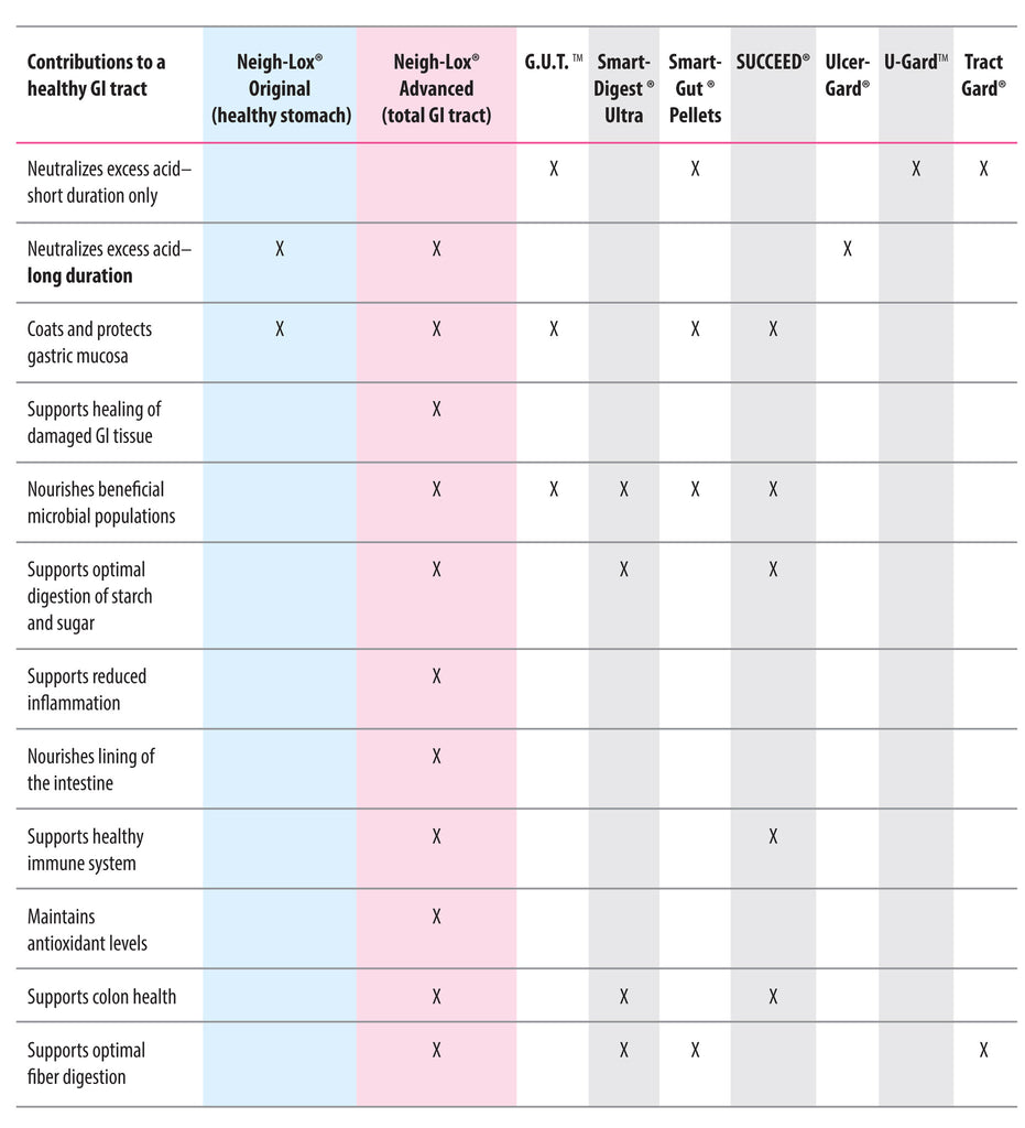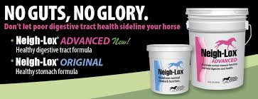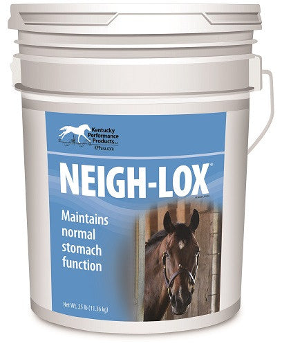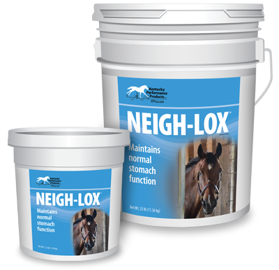 NEIGH-LOX® Pellets are a patented product designed to help horses maintain healthy stomach function.  Gastric ulceration is widespread among foals and performance horses. Weaning, sale preparation, training, showing, shipping and other stress related activities can all lead to digestive problems. Neigh-Lox® Digestive Support for Horses protects the stomach lining from gastric acid to help prevent ulcer formation and maintain normal stomach function. Feed horses and yearlings 8-12 oz daily. Feed young horses 4-6 oz daily. Pellets.  Highly palatable.